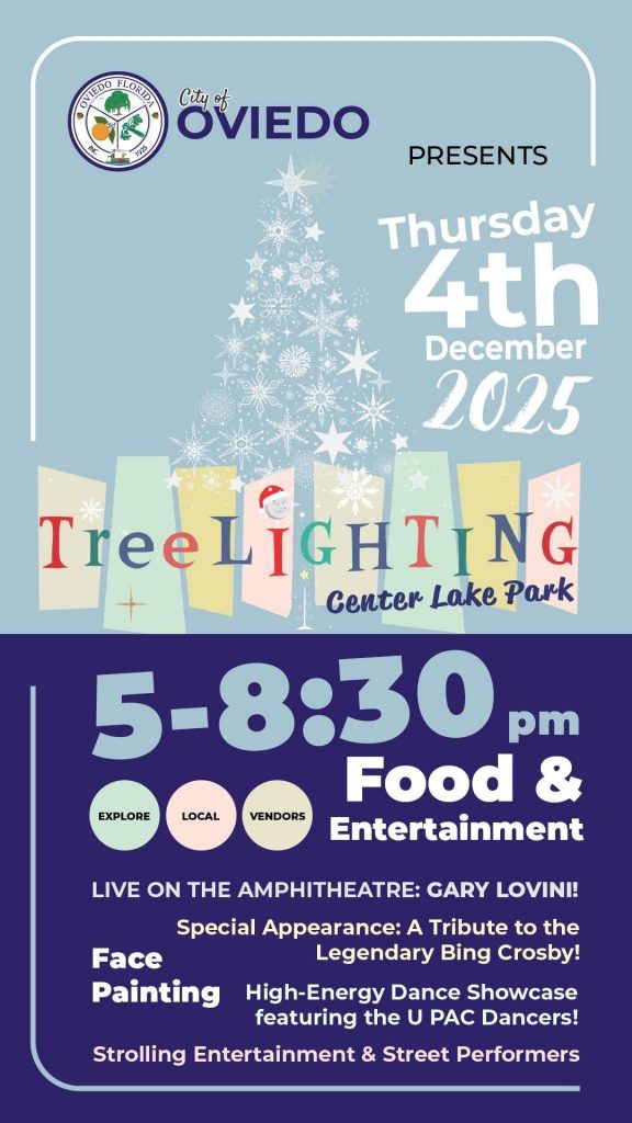 Celebrate the season at the Oviedo Tree Lighting Ceremony and enjoy an electrifying live performance by Gary Lovini!